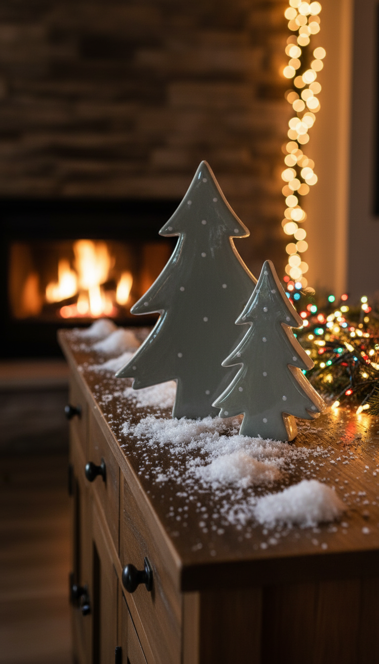 A simplistic and festive decoration, featuring a grey (with green undertones) Christmas tree with white polka dot decal. Sure to compliment most Christmas themes.